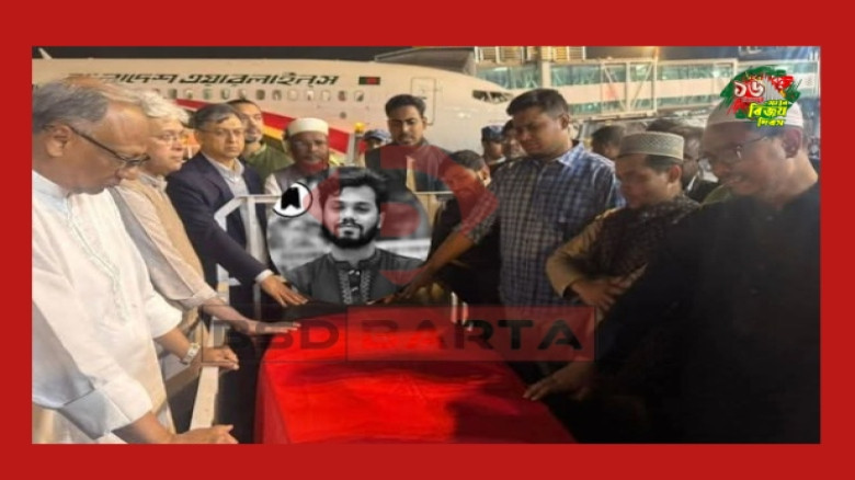লাল সবুজের পতাকা মোড়া কফিনে দেশের পথে হাদির নিথর দেহ