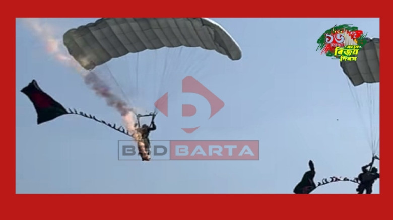 বিজয় দিবসে পতাকা হাতে প্যারাট্রুপিংয়ে বা..